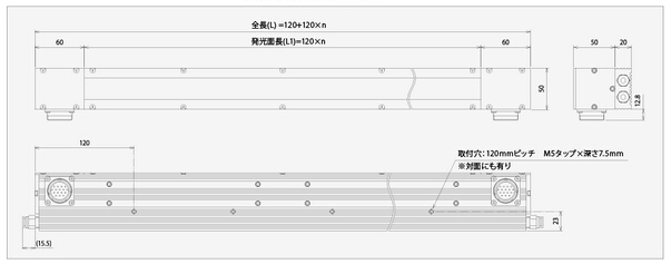 自然冷卻:L(發(fā)光面長(zhǎng)+120mm)xW50x50H 強(qiáng)制冷卻:L(發(fā)光面長(zhǎng)+120mm)xW50x70H |